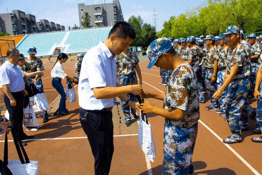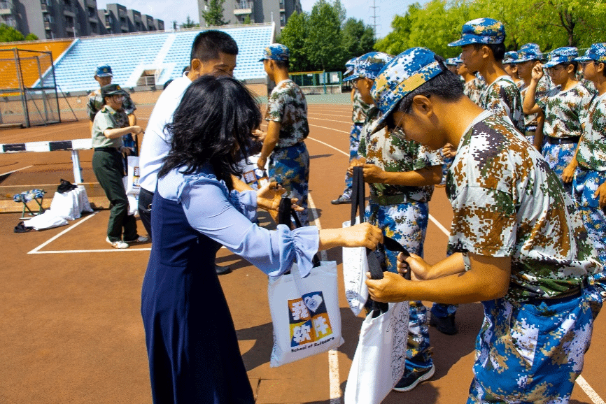 随后,学院领导为同学们送上精心设计的晴雨伞,在炎炎夏日中带来丝丝凉意。一把晴雨伞既表达了学院的关怀和人文精神,也是对大家日夜艰苦训练的肯定和赞扬。