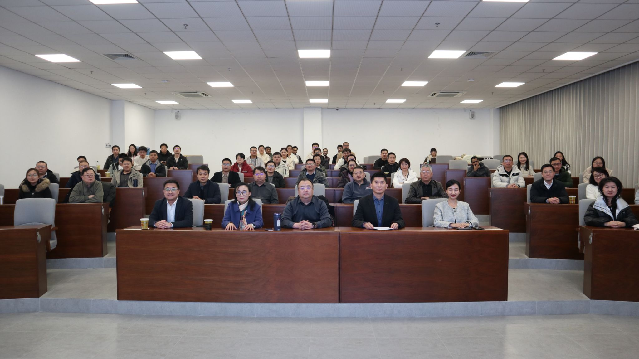 在太仓智汇港B座103会议室召开2024年度领导班子及中层干部述职测评暨全体教职工大会。学院领导班子、学校组织部组织员石寒、全体教职工及学生代表参加会议,部分教师线上参会。会议由党委书记李晗主持。