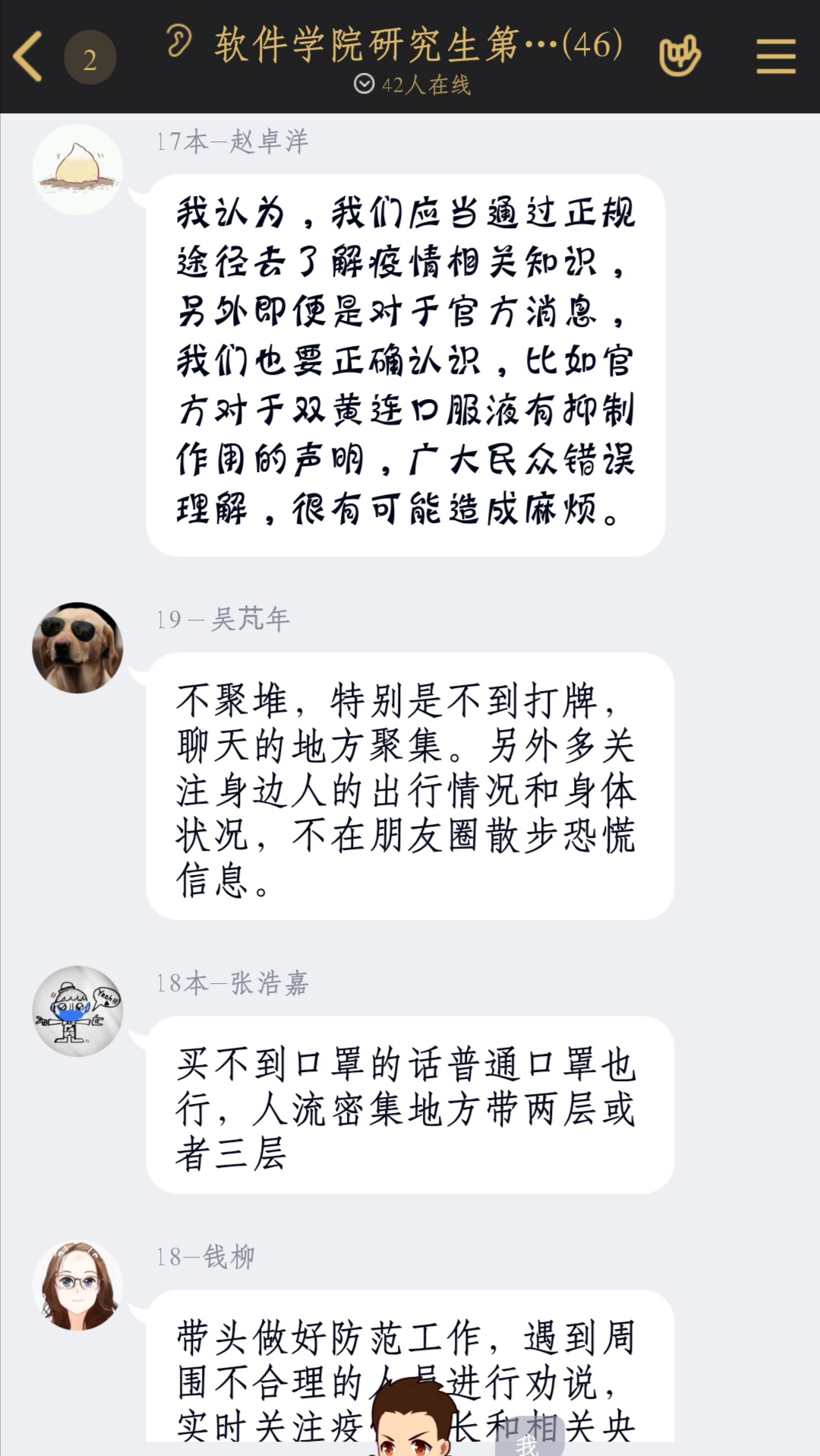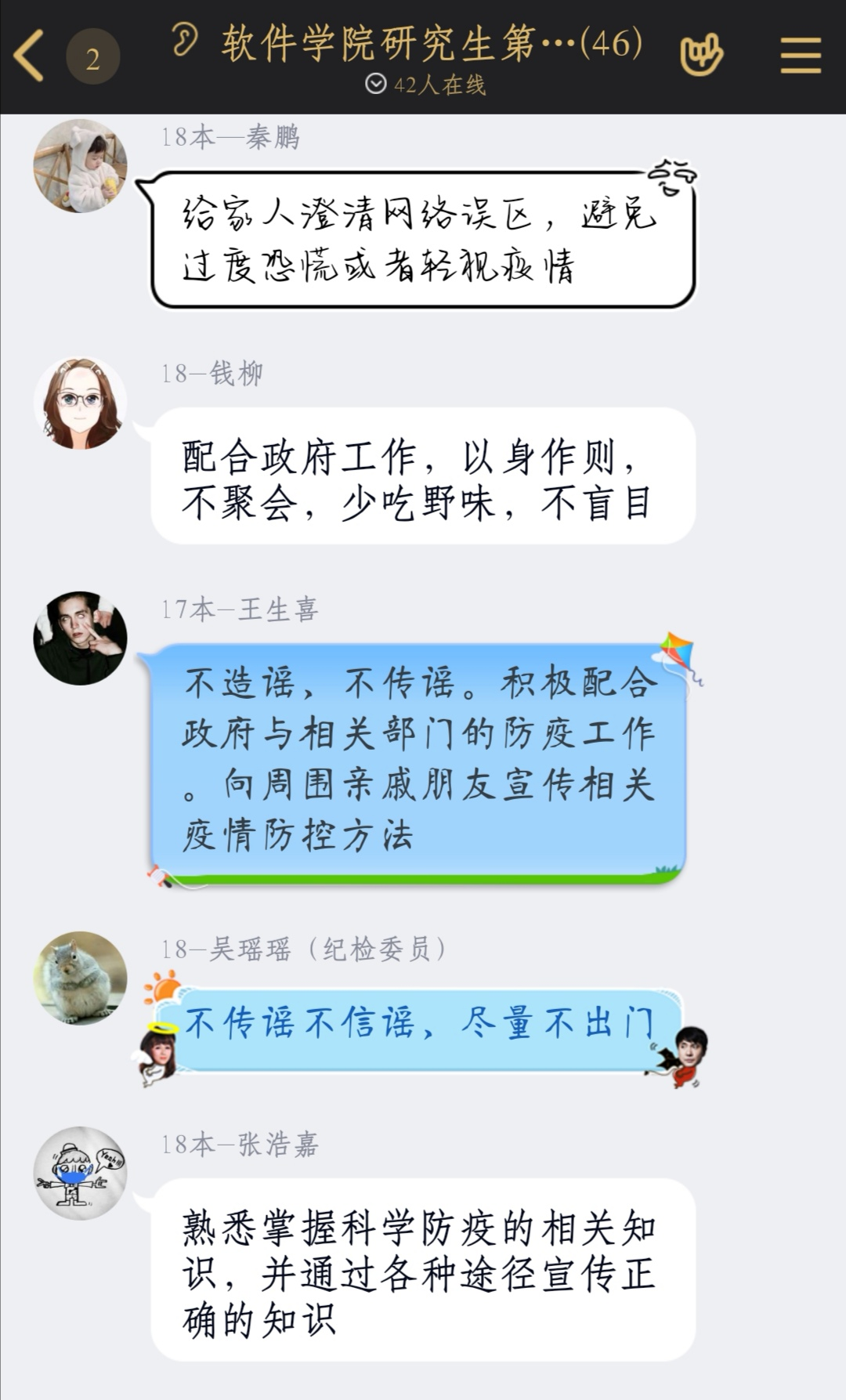 研究生第三党支部的党员同志们行动起来了。因条件所限虽身不能至抗疫一线,但他们也尽自己绵薄之力,力所能及为抗疫防疫做一些属于青年学生党员应该做的事情。