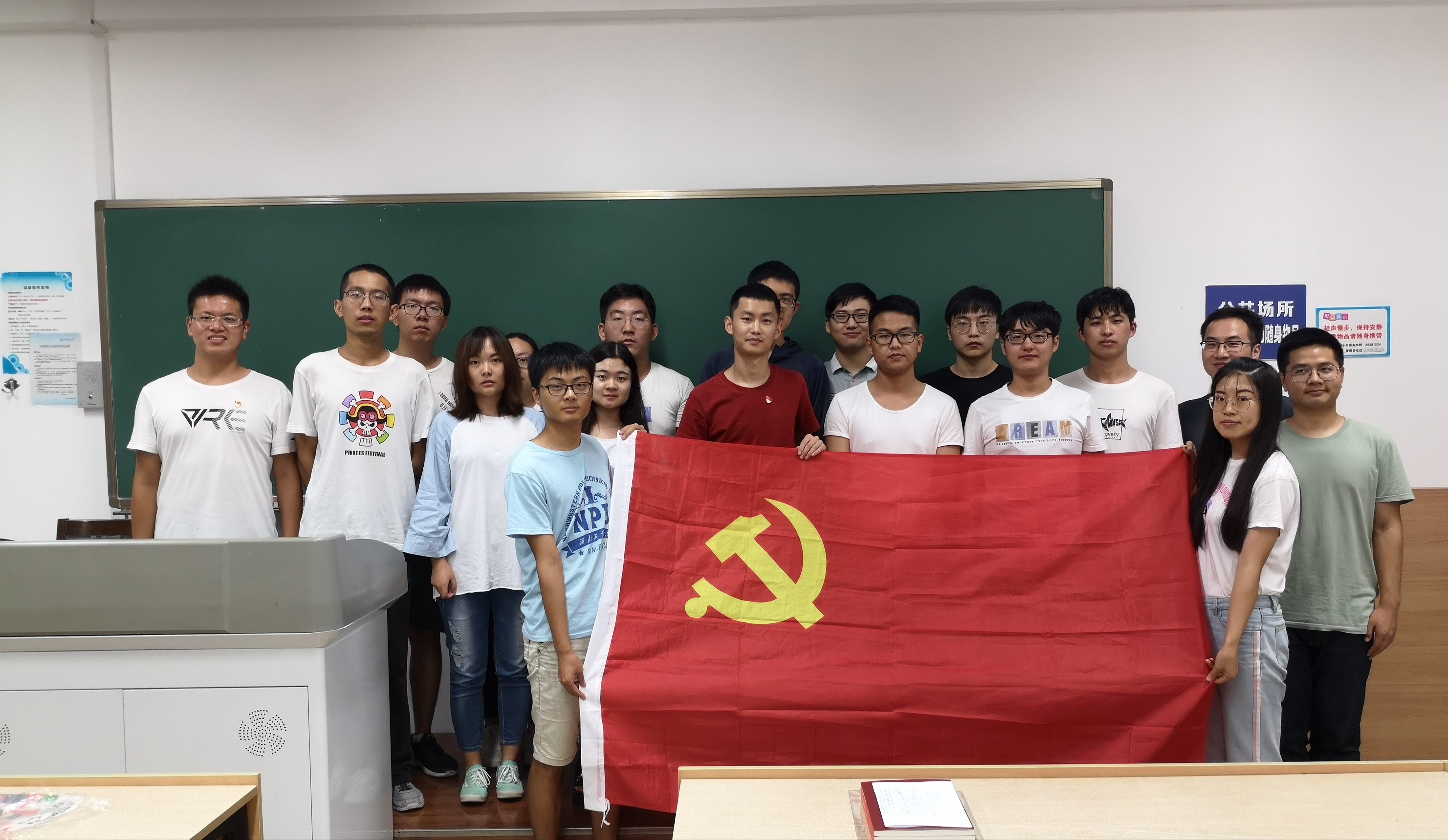 2019年10月25日开展了“不忘初心、牢记使命”主题教育之青年学生党员庆祝中华人民共和国成立70周年主题党日活动。主题教育活动中,支部副书记梁奕桢同志在传达了党中央和学校、学院党委关于开展“不忘初心、牢记使命”主题教育的要求,阐述了主题教育活动的意义后便组织观看开国大典彩色记录影片,而后探寻新中国成立70周年以来的辉煌巨变,探讨青年学生党员身上所肩负的历史使命。主题学习讨论后,支部书记胡轩豪同志带领全体党员进行新时代青年学生党员主题宣誓。