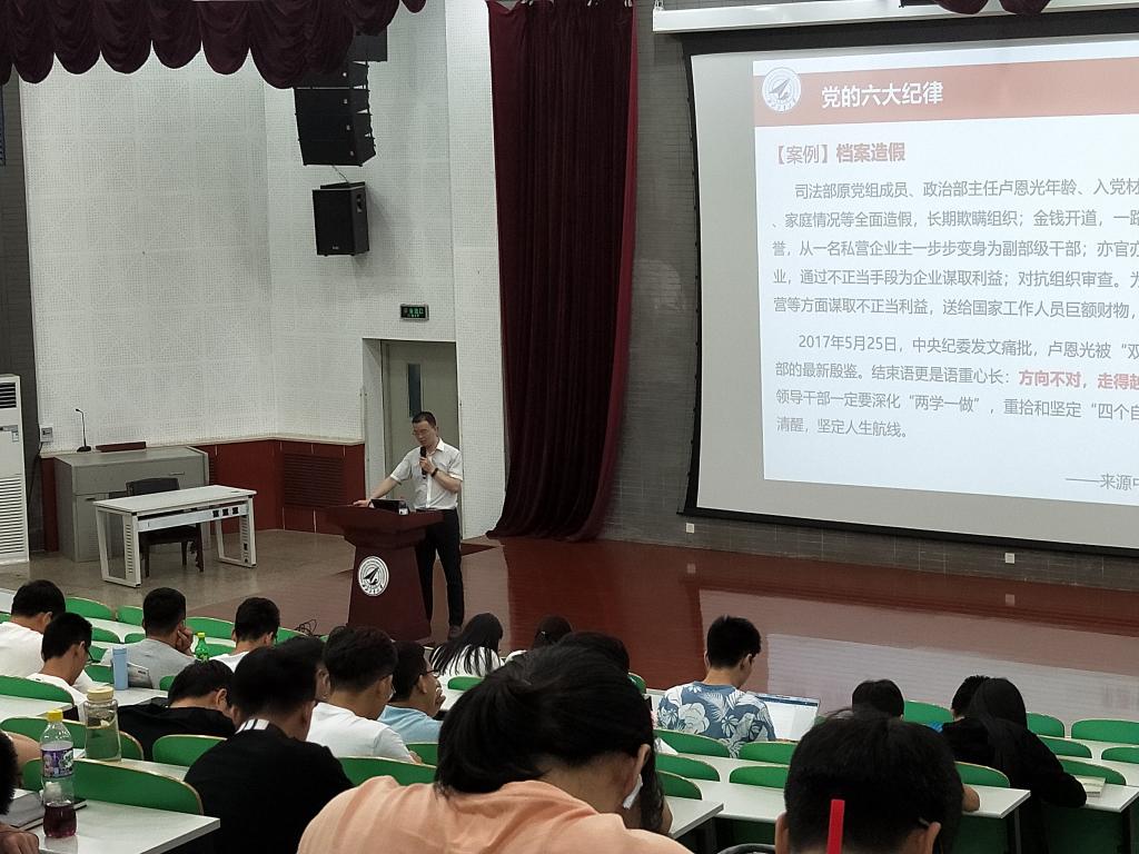 最后,李老师以谨言相送,“人道经纬万端,规矩无所不贯”,“畏法度者最快活,守规矩者最自由”“扣好扣子,行稳致远”,叮嘱同学们今后无论在学习、生活还是工作中一定要遵守法律法规,争取早日加入党组织,切实履行党员义务,发挥模范带头作用。