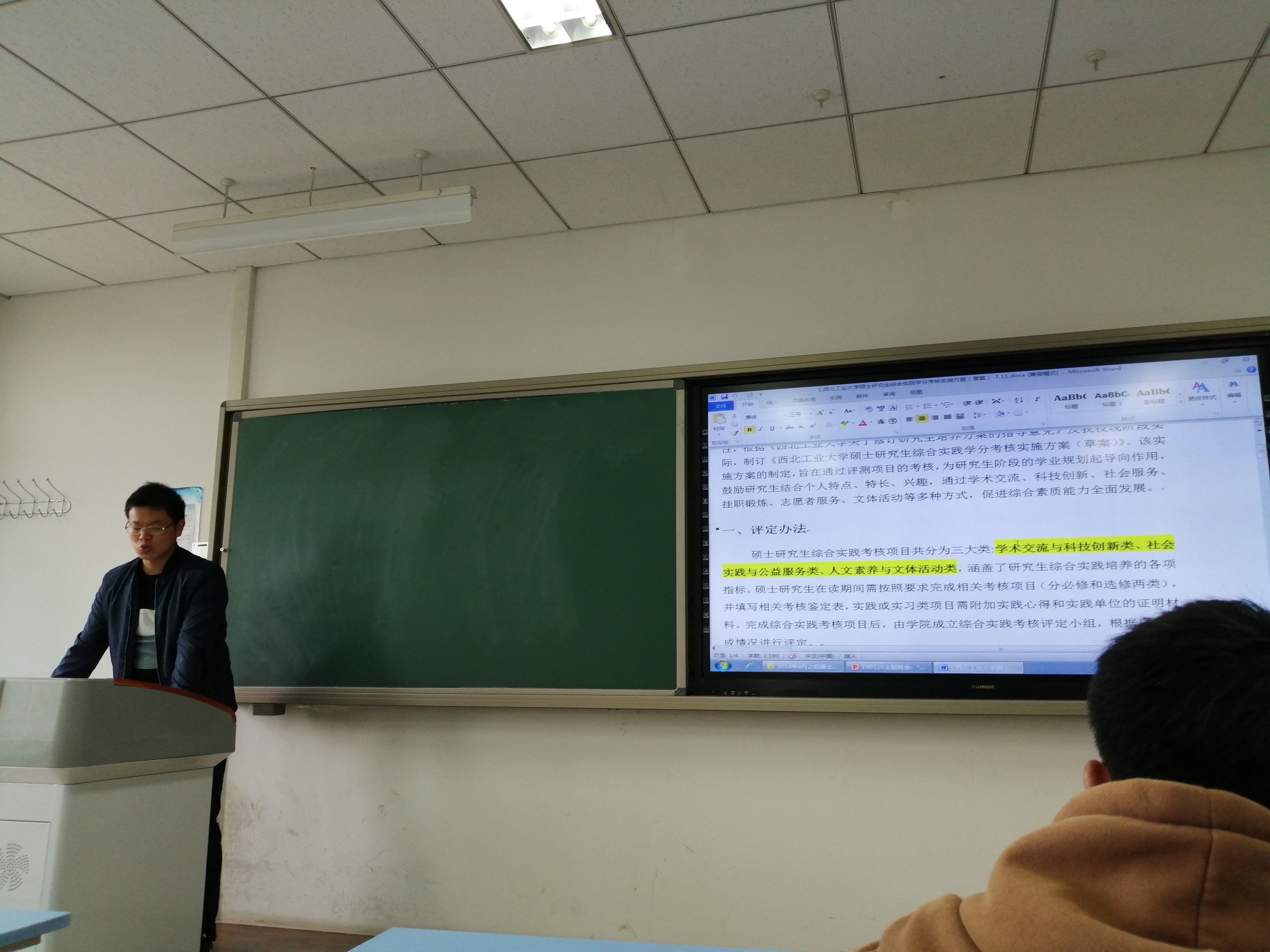 接着在班长对本班秋季学期班团建设、学习科研、文化活动等方面进行了简单的回顾与总结后,本次班会便进入了主题环节——对2018-2019学年秋季学期班级“争先创优”工作进行表彰。
