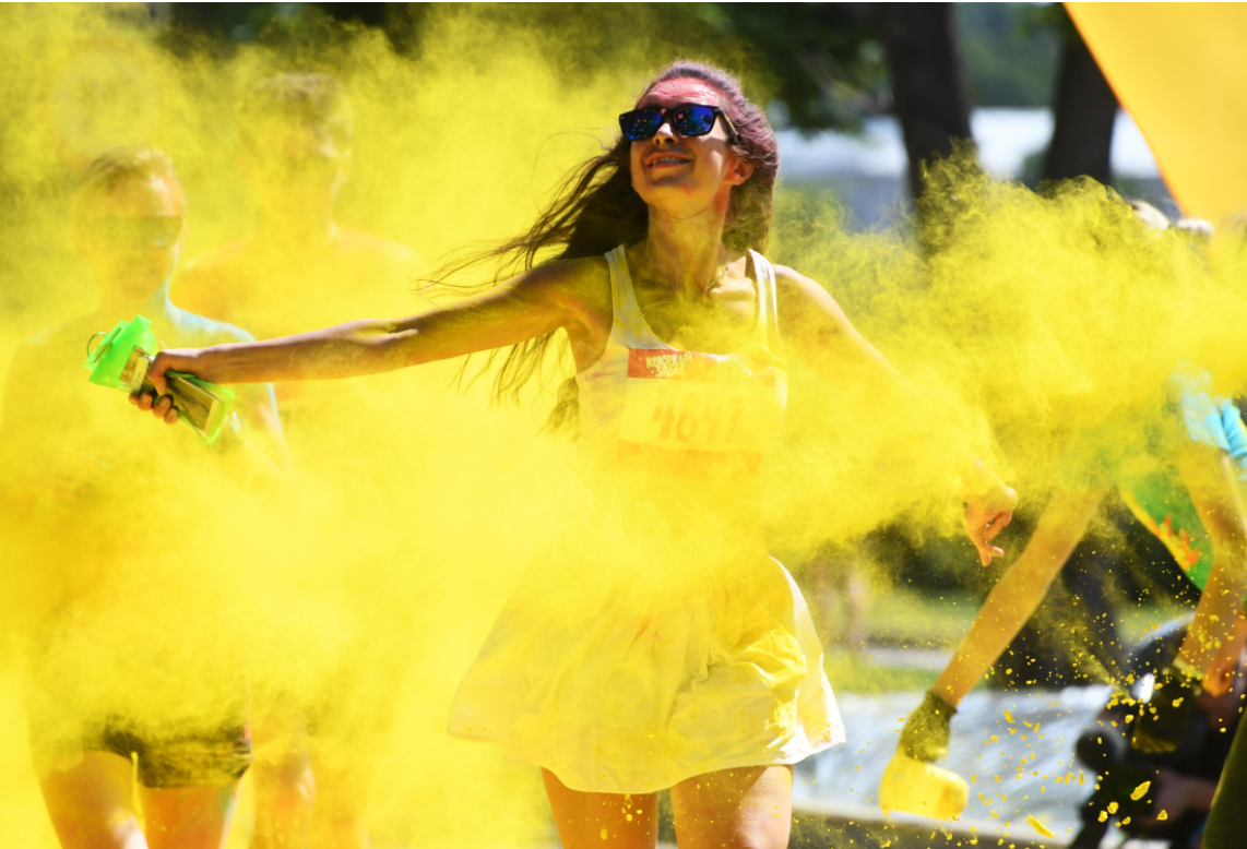 活动开始,参赛者需身穿自己DIY的白色T恤,从起点站出发,一路上将经历红橙黄蓝四个不同色彩的彩色站,到达彩色站后,参赛者们被喷洒上相应颜色的粉末。一路上,不论跑步速度的快慢,也不管跑步动作的张合,我们关注的,是参赛者以最昂扬的精神状态通过终点线。