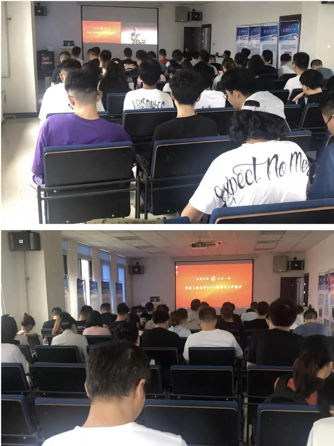 2021级研究生正常返校的新生分批次在启翔楼401进行线下集中观看,暂缓返校的学生在家中采取线上学习的方式认真观看教育课程。入学教育系列课程涵盖了美育、党史、新中国史、改革开放史和社会主义发展史四史教育系列、安全和心理健康教育、国际化教育以及榜样力量等多个方面,让广大学子如沐春风,受益良多。