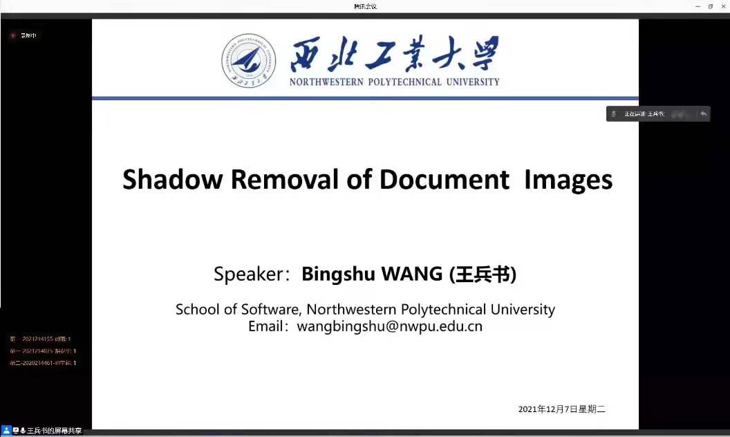 王兵书副教授作题为《文档图像阴影移除》的精彩学术讲座。在讲座内容的精彩预告下,免费看a片