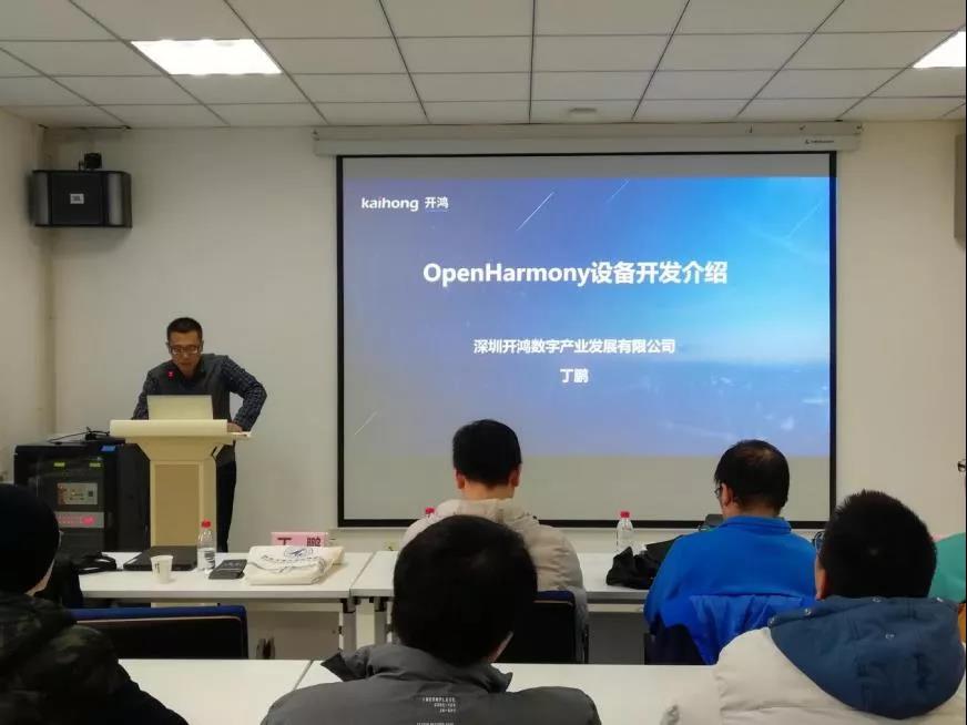 讲座伊始,丁鹏从OpenHarmony设备开发介绍,对OpenHarmony的简介、整体架构、设备开发快速入门与子系统与组件四个方面进行了详细讲解,同时从OpenHarmony的技术特征、系统类型、整体架构到代码实现,每一步都由浅及深地向同学们娓娓道来。同学们认真聆听并与丁鹏进行互动答疑。