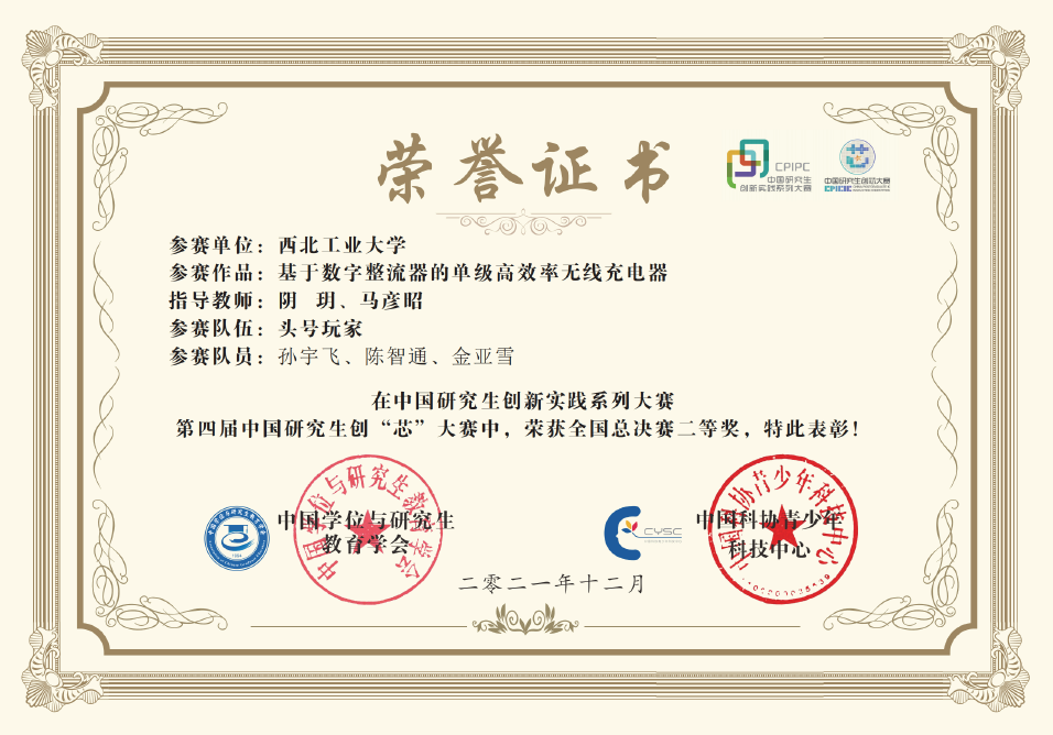 本届大赛中“头号玩家”团队的参赛作品为“基于数字整流器的单级高效率无线充电器”,作品面向无线充电领域,提出一种基于数字整流器的单级无线充电器,很大程度的提高了无线充电的传输效率。为了延长电池寿命,该参赛作品使用了数字控制的恒流恒压技术,可以随着工艺尺寸的缩小进一步减小芯片面积。本作品使用0.18μm BCD工艺,最大传输效率可以达到92.8%,芯片面积为0.56m㎡。