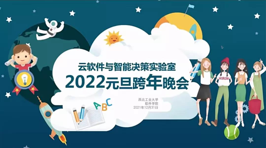 云软件与智能决策实验室在线举行了2022年元旦跨年晚会。本次晚会由张鹏博士主持,武君胜教授、李伟刚副教授,云软件与智能决策实验室的全体博士、硕士研究生,2019级14011907班、14011908班本科生欢聚一堂,共同迎接2022年的到来。