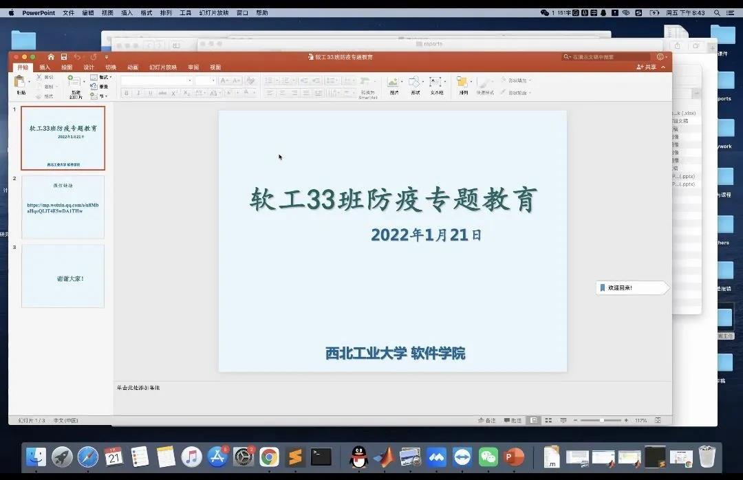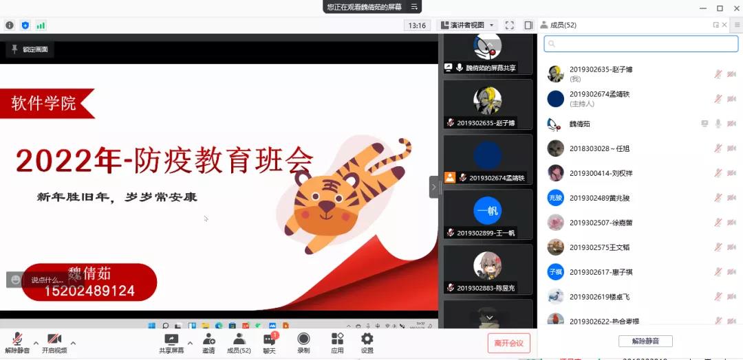 14011901班、14011903班班主任魏倩茹为同学们开展了防疫教育主题班会,给同学们讲解了回家要注意的事项以及要求,同时回答了同学们的问题。随后陈洪亮书记又对其中几点内容进行了详细的描述,强调大家要注意家乡的具体政策,确保自己能够安全平安回家,以及关于两证(核酸检测证明和返乡证明)的重要性。