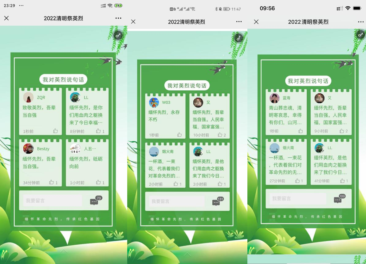 铭记历史,追思英雄。同志们深切缅怀先烈们的丰功伟绩,真情表达对祖国的美好祝愿,让英烈精神融入血脉、励志青春!