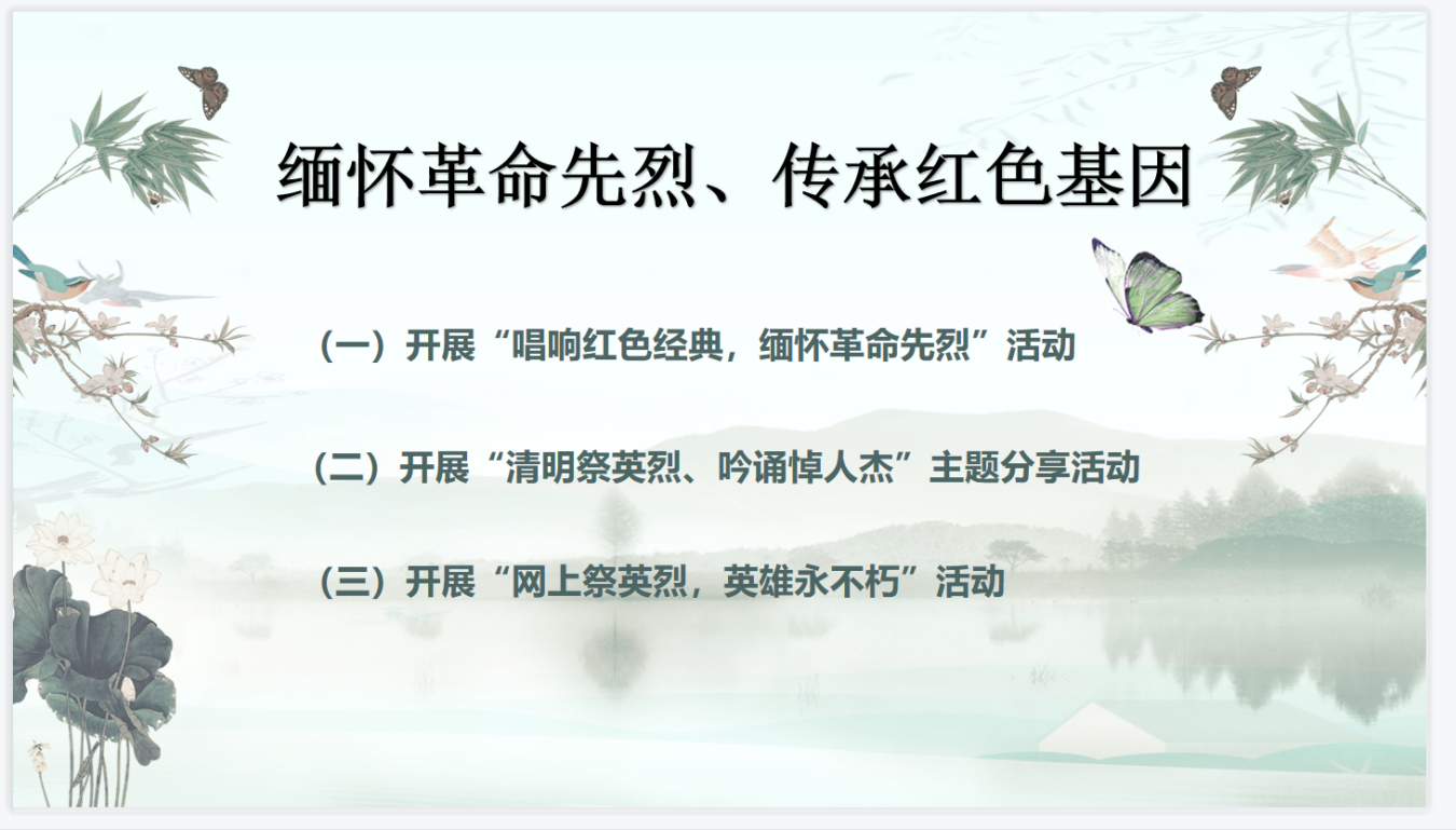 各学生党支部通过分享革命烈士故事、诗歌创作、诗歌朗诵等形式缅怀先辈、铭记革命先烈光荣事迹,学习革命烈士的大无畏精神。重读一个个红色故事,重温一个个光荣事迹,总是给人以震撼心灵的精神力量。信仰如磐,志坚如钢,英烈是历史天空中最闪亮的坐标,英烈精神如同熊熊燃烧的火炬,始终照亮我们前行的道路。