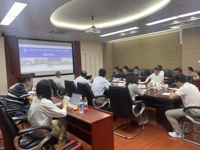 、智能科学学院)党委书记蒋斌、院长吕建成、副院长及院办等老师参加了调研交流。双方互相介绍了学院组织架构、人才培养、科学研究、师资队伍建设、校企合作等方面的基本情况,并就优秀大型工业软件课程的联合引进、研究生培养、加强国际化内涵建设的具体做法、准聘制教师的聘期与考核管理等调研内容进行了深入的交流研讨,分享了各自学院解决相关问题的方法和措施。