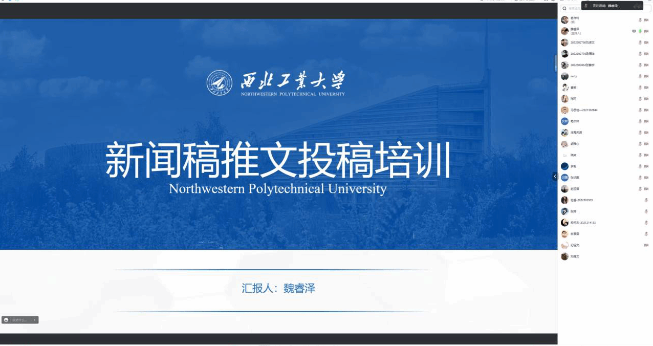 接着魏睿泽对新闻稿以及公众号推文的投稿流程进行了介绍,首先要找好需要投稿的网站或者公众号,然后再了解各个平台的投稿要求,基于各个不同的要求进行相应的准备,最后按照各个平台的要求以及投稿流程进行投稿。