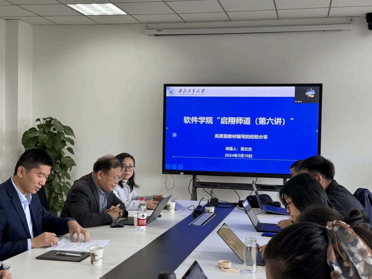 在启翔楼303会议室举办“启翔师道”高质量教育教学专题系列讲座第六讲——“高质量教材编写经验分享”。学院党委书记李晗、教学副院长马春燕出席会议,学院西安教师和太仓教师分别以线下线上方式参加会议,会议由李晗主持。