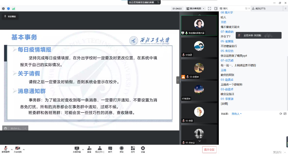 随着返校工作基本落下帷幕,各年级学期初的考试相继结束,同学们也迎来了新的学期。为贯彻落实学院疫情防控工作要求,做好疫情防控工作,增强学生疫情防控意识并帮助同学们定好学习计划,充分认识自我,但由于近期西安再次出现疫情,原定召开的各年级新学期大班会和安全教育会议改为线上进行。