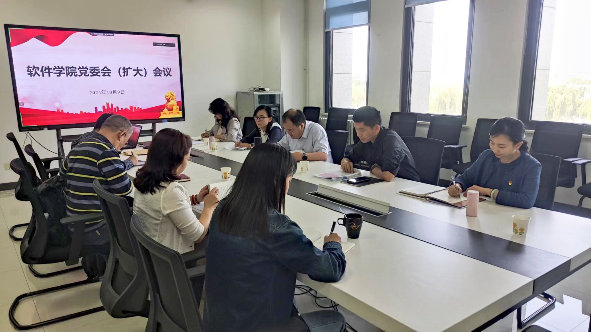 10月9日下午,免费看a片 以线上线下的方式召开党委会(扩大)会议,传达学习学校第十四次党代会精神,研究部署落实举措。学院党委委员、院长助理、教工党支部书记、办公室有关负责同志参加会议,会议由学院党委书记李晗主持。