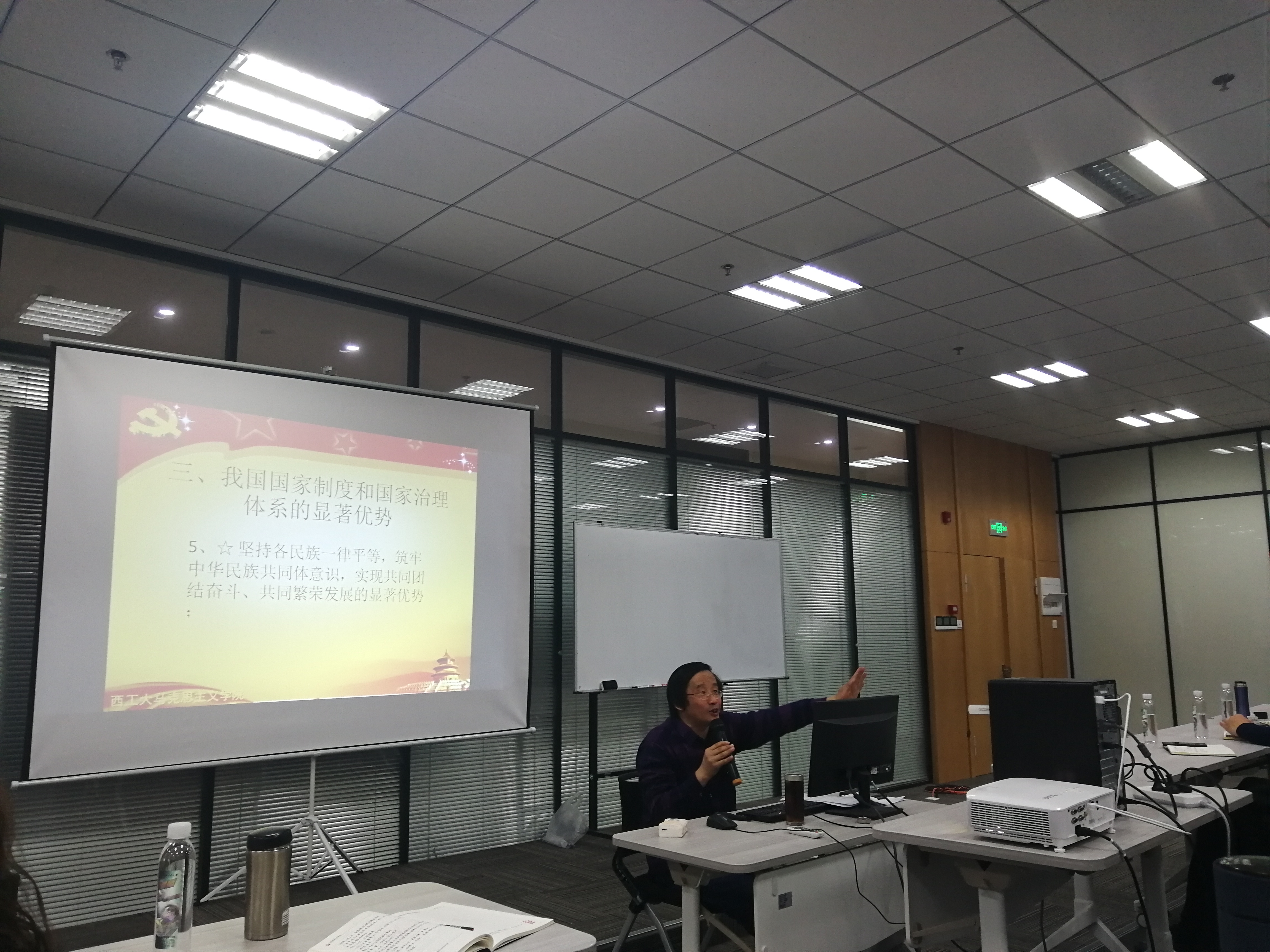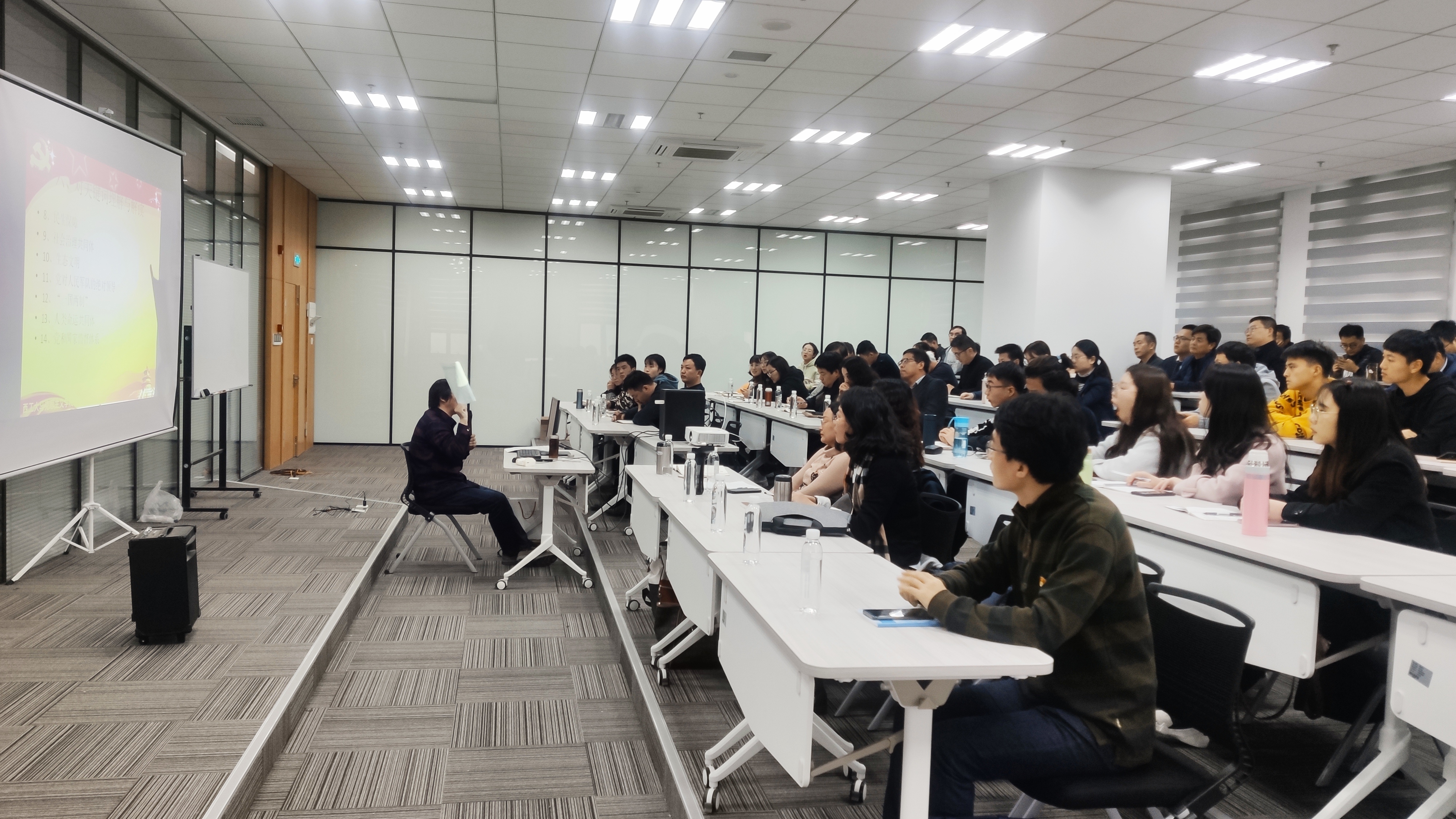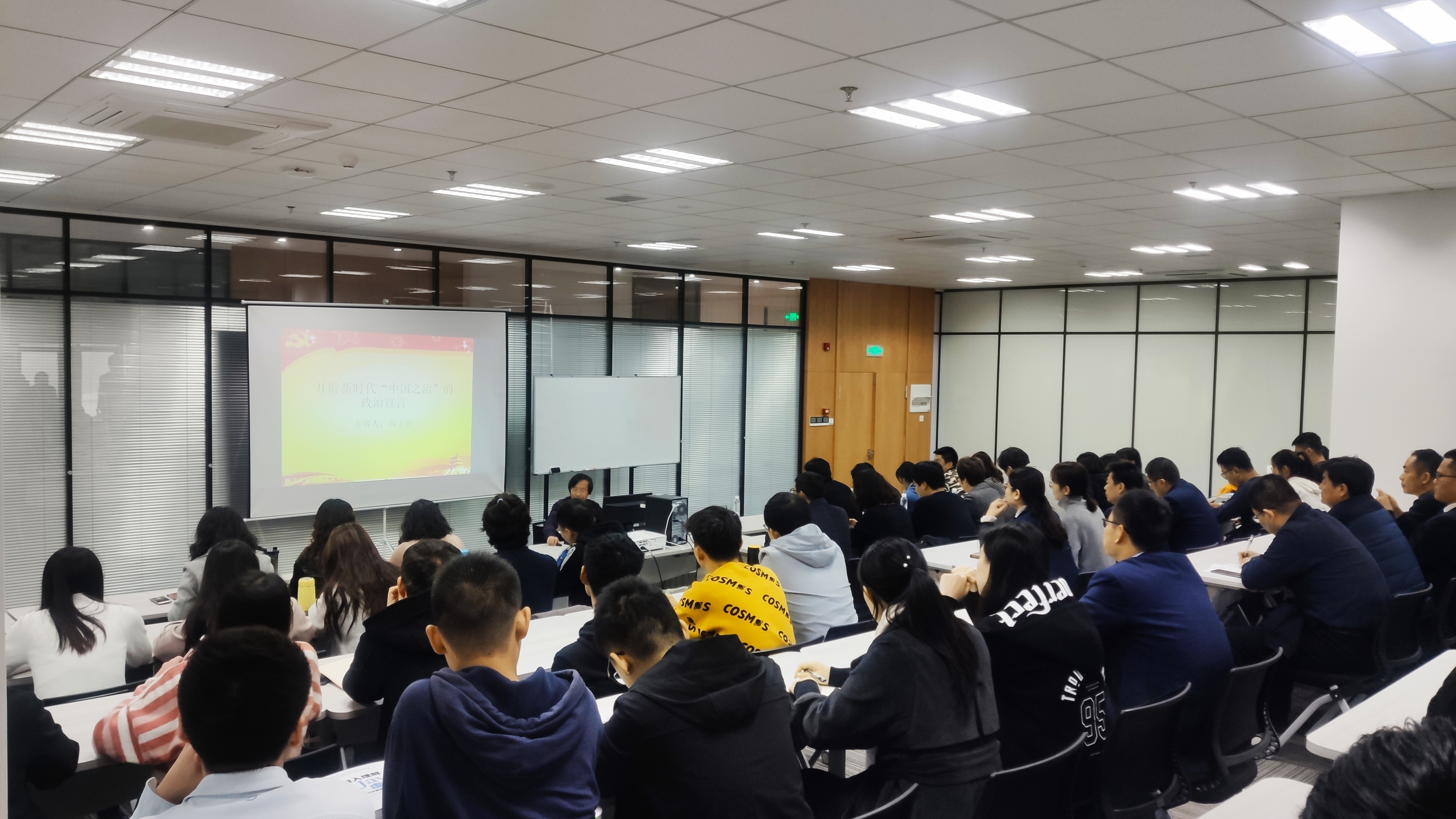 同时,高宝营教授着重讲述了我国国家制度和国家管理体系的显著优势,旁征博引,用丰富的例子从13个方面解释了党的先进性,我国政治制度的优越性,我国国家制度和管理体系是党在近一百年的摸索中取得的,是在中国这片土地孕育而生的。