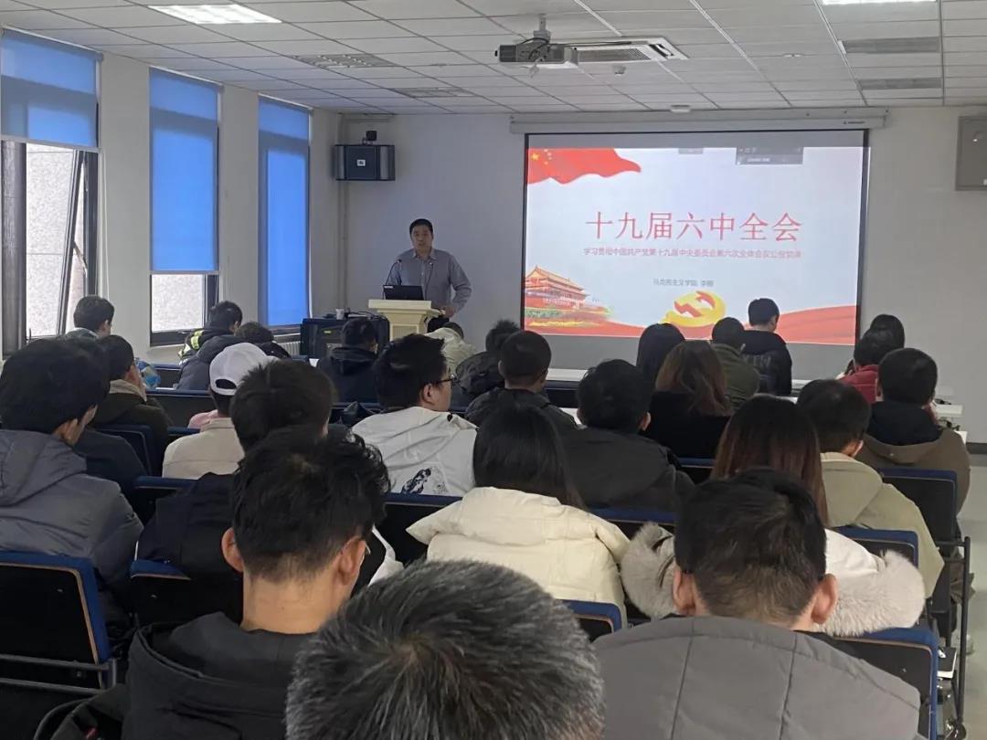 马克思主义学院党委副书记李刚担任主讲,给全体学员带来《学习贯彻中国共产党第十九届中央委员会第六次全体会议》的专题讲座。