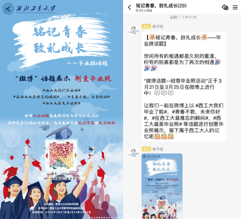 本次活动旨在以“创意毕业照”为核心,吸引广大毕业生使用“微博”APP进行毕业照展示,留下专属于毕业生们的记忆碎片,也为工大留下一份特殊的礼物。
