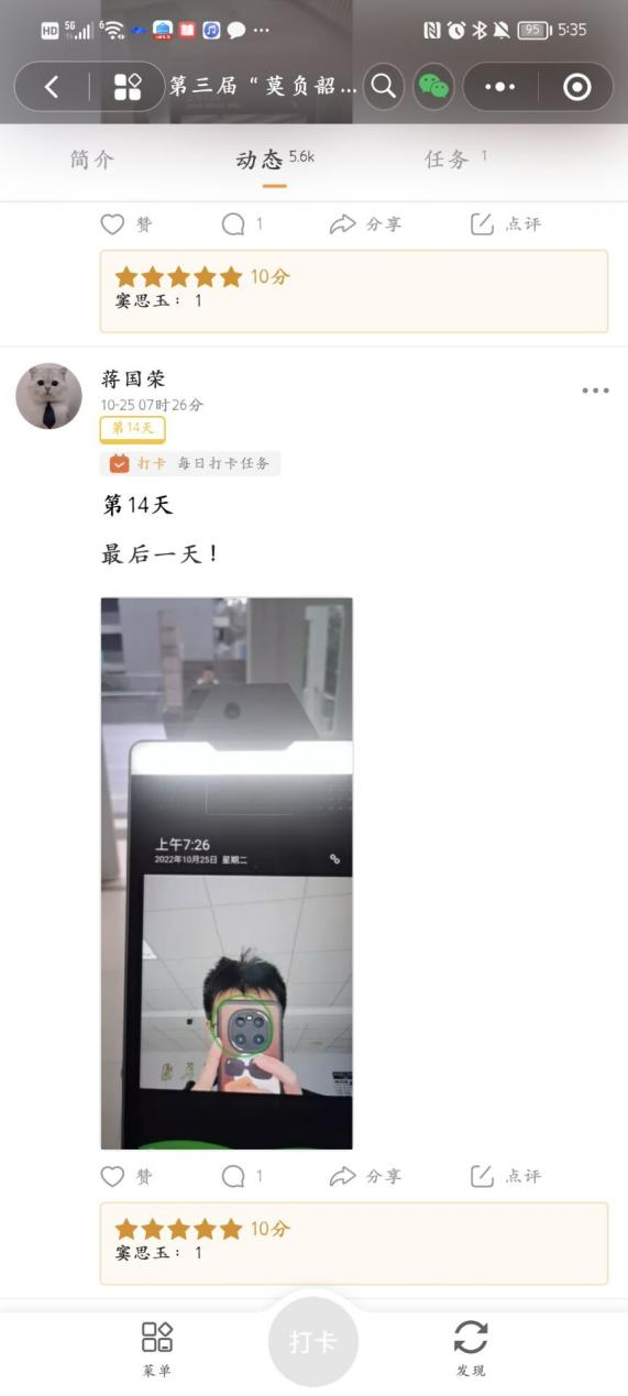 礼仪队共同承办了为期十四天的第三届“莫负韶光”早起打卡大赛。本次活动于10月12号启动,采用线上打卡与线下打卡相结合的形式开展,参与人数首次突破600人。