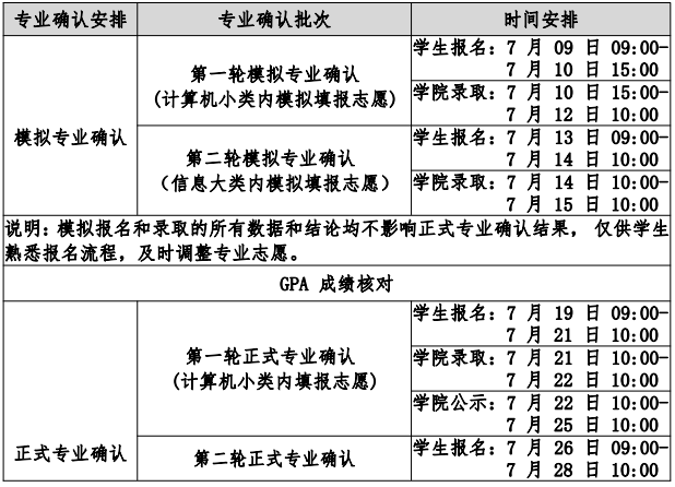2. 在第一轮专业确认和第二轮专业确认时,均按照以下规则录取:当专业接收指标上限大于第一志愿的报名学生人数时,可直接录取。当专业接收指标上限少于第一志愿报名学生人数时,依据学生在校期间 GPA 成绩进行排序录取。第一志愿符合条件的学生录取完成后,如还有剩余计划名额,相应专业可在剩余接收计划内按学生的剩余志愿顺序按上述规则录取,录满为止。