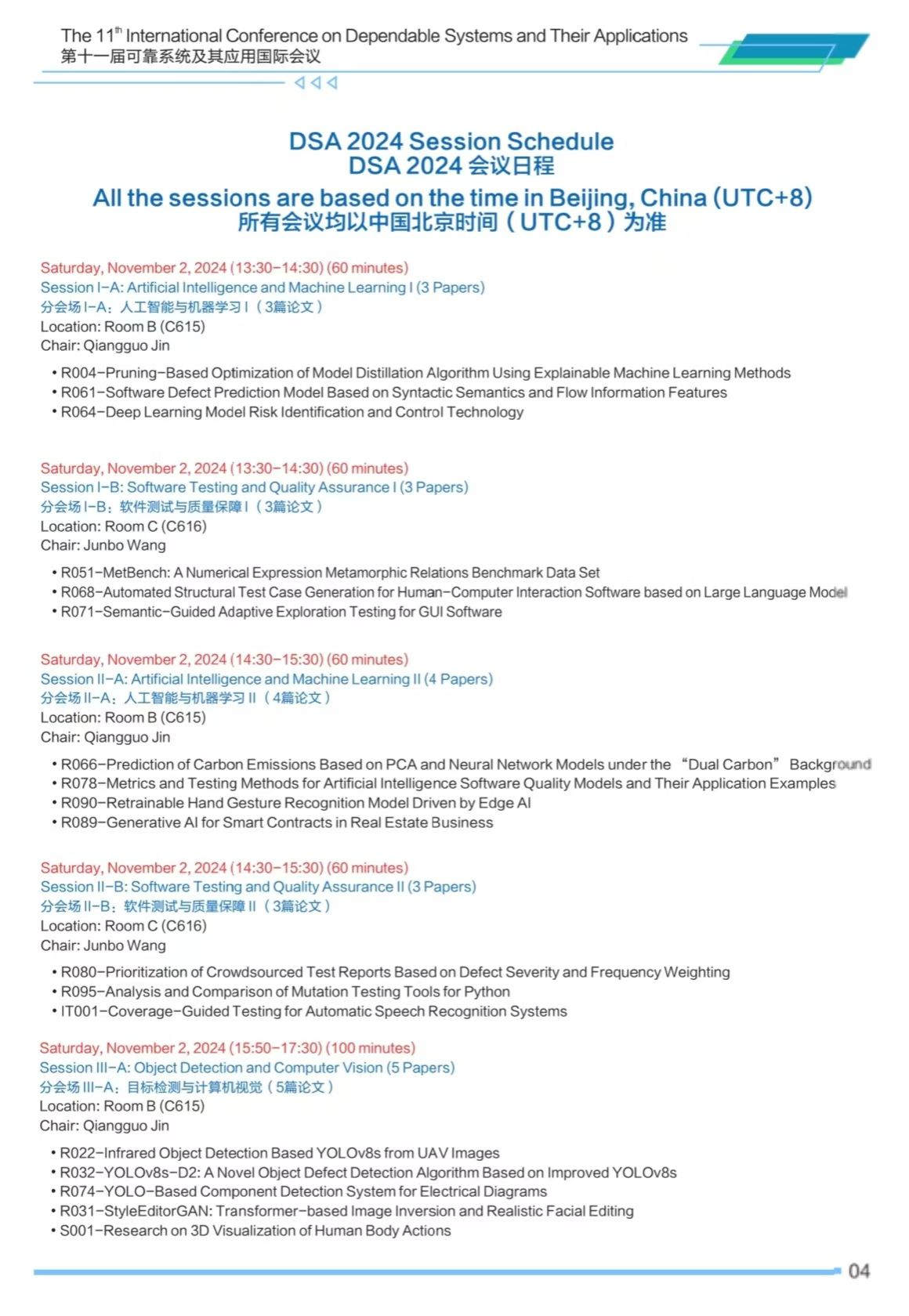 第十一届可靠系统及其应用国际会议(DSA 2024)将于2024年11月2日-3日在免费看a片 太仓智汇港举办,会议安排如下,欢迎各位专家学者参会交流。