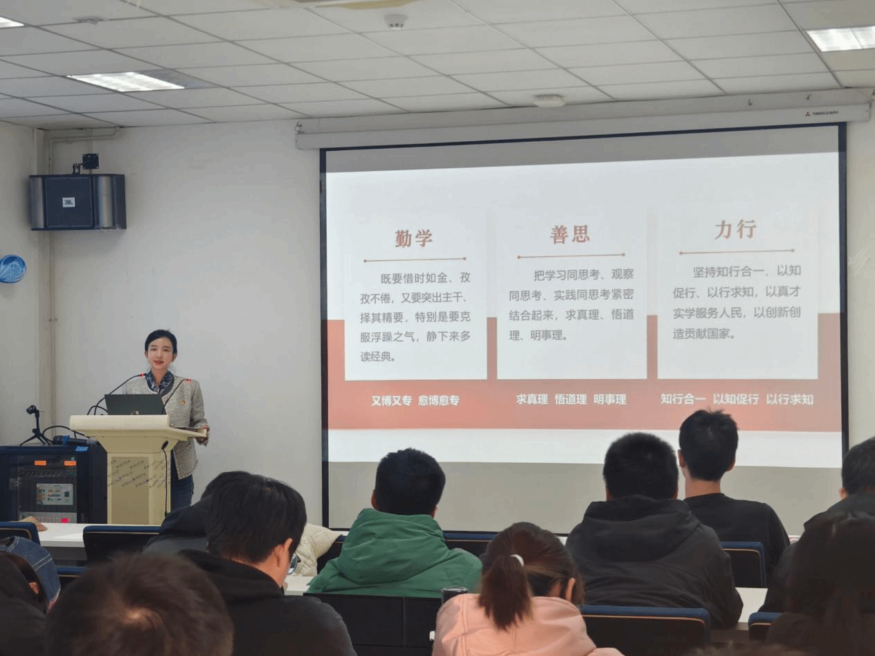 陈博从不同历史时期的青年责任担当出发,回顾了从20世纪初期到21世纪新时代,中国青年为国家发展和民族复兴作出的卓越贡献。又围绕新时代青年的使命当担、新时代青年如何成长成才、新时代青年成才的新要求三个方面指出新时代青年在全面建设社会主义现代化国家的新征程中,应肩负的多重使命与担当。她勉励同学们注重全心全意做好小事,坚定理想信念、练就过硬本领、勇于创新创造、矢志艰苦奋斗、锤炼高尚品格,为实现学校“天下工大、世界三航”远景目标贡献自己的力量。