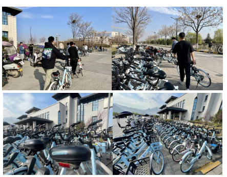 活动第三部分,支部全体同志以实际行动践行雷锋精神,大家一起来到启翔楼下摆放共享单车。同志们相互协助,将未停放在指定停车区的共享单车搬到路边划定的区域,将停车区的车辆摆放整齐,疏通了启翔楼周围的道路空间,减少了保安和单车调度员的负担,一排排整齐摆放的共享单车成为了校园中的一道亮丽风景线。