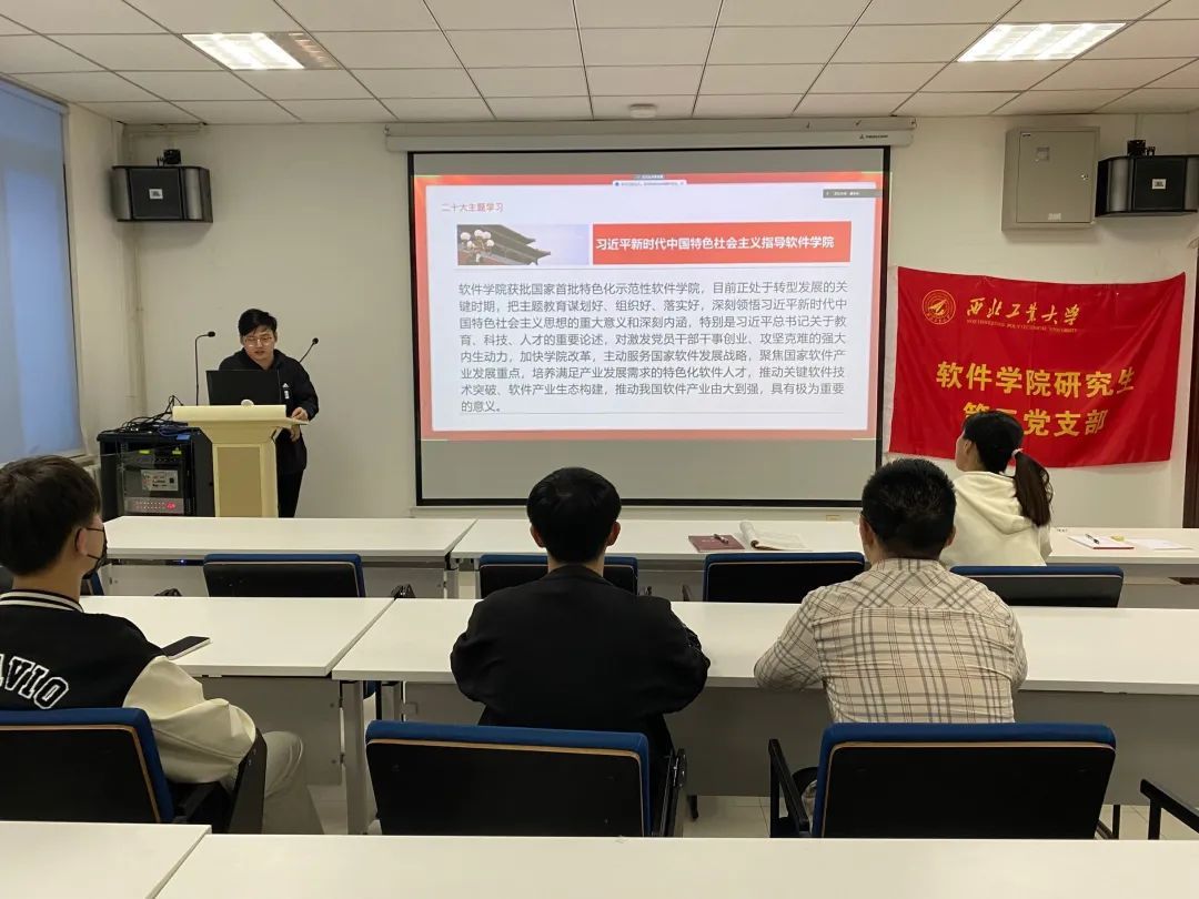 研究生第二党支部全体党员在党支部书记潘泽华的带领下,开展了主题为习近平新时代中国特色社会主义思想专题学习研讨会。选读了《习近平著作选读》中《新征程是充满光荣和梦想的远征》篇文中指出:新征程是充满光荣和梦想的远征,要始终保持昂扬奋进的精神状态,始终坚持一切为了人民、一切依靠人民,始终推进党的自我革命,始终弘扬全人类共同价值。选读完后,大家进行讨论,并开展学习习近平新时代中国特色社会主义思想的热潮。